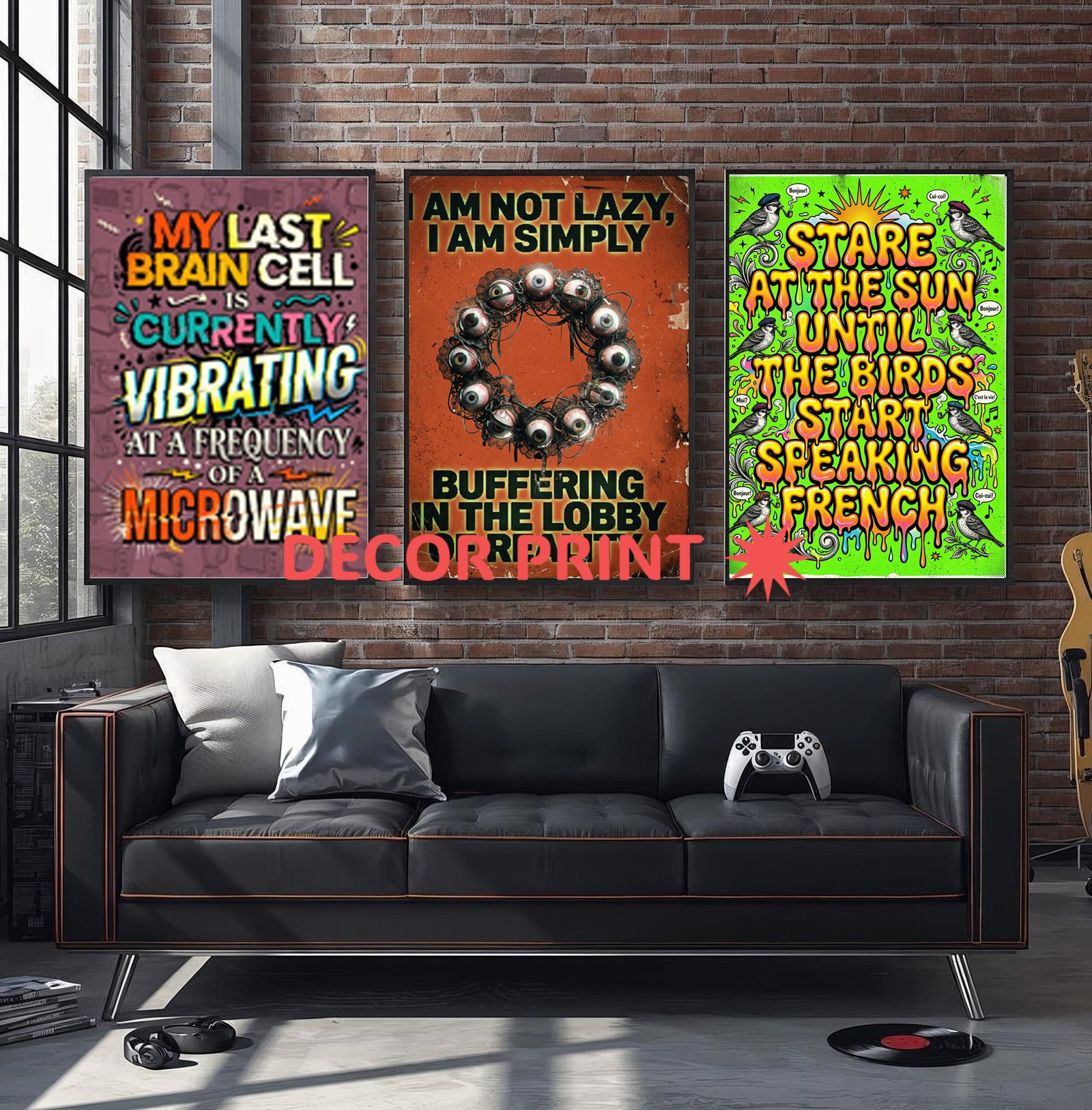 Are you tired of boring, “Live-Laugh-Love” wall art? Elevate your space with this exclusive set of 3 Wacky Typography Digital Prints. These aren’t just posters; they are conversation starters, existential glitches, and dopamine-boosters for your walls.