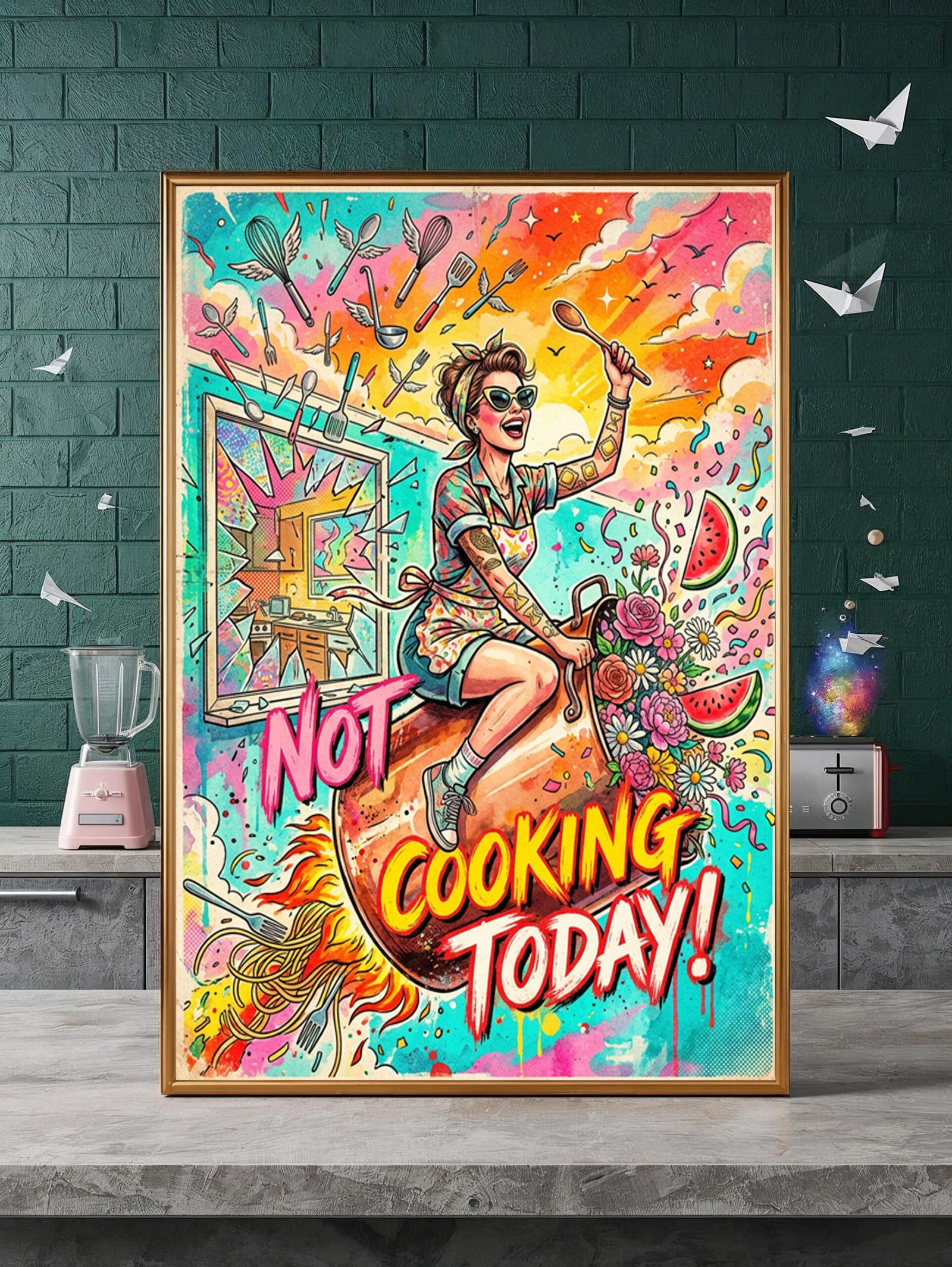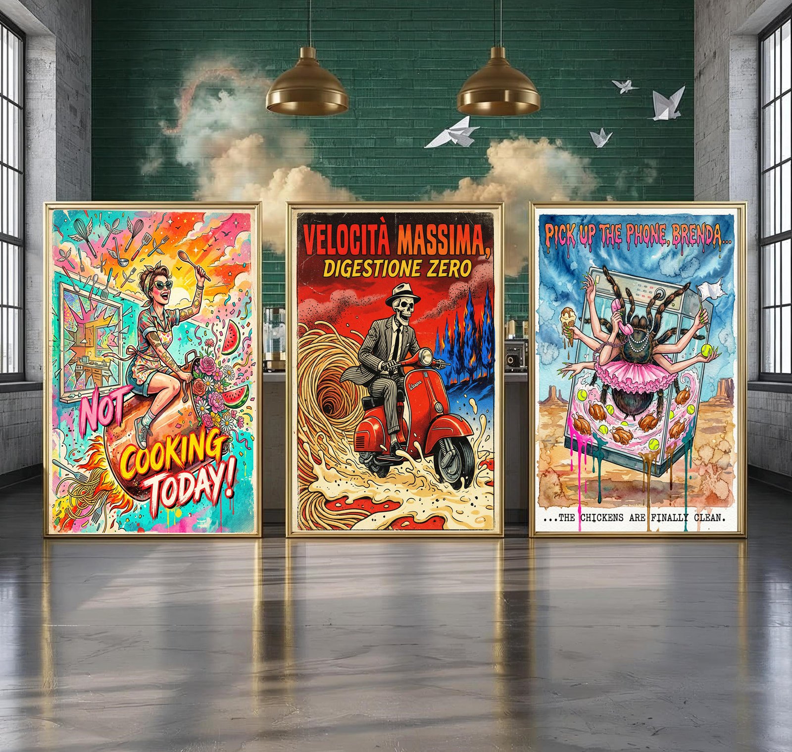 Funny Kitchen Wall Art Set of 3: Brenda’s Worst Day, I’m Not Cooking Today & Inferno Carbonara, Retro Humorous Poster, Quirky Cooking Gift Bundle