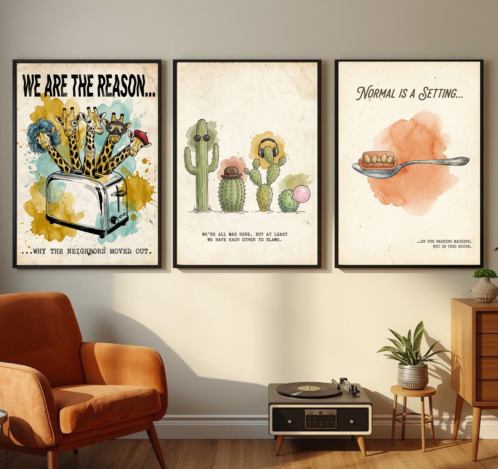 This curated set of 3 posters reimagines “family time” through a quirky, artistic lens. From the metaphorical “Family Soup” to the perfect “Synchronization” of a household, these prints are designed for homes that value both style and a good conversation starter.