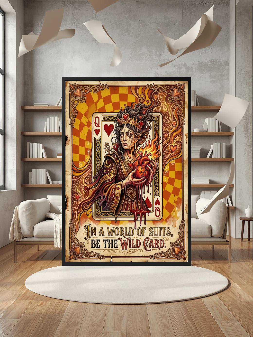 Queen of Hearts Wall Art Set, Wacky Retro Playing Card Poster, Vintage Surreal Art Print, Unique Quote Wall Decor, Maximalist Aesthetic Poster, Quirky Queen Print, Funky Card Game Gift, Eclectic Home Decor, Retro Typography Art, Digital Download